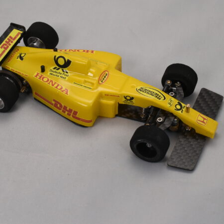 Chassis set F1 scale 1/28 F280 Mk.1.PRO – is a variant designed for all racing club tracks. The chassis made of metal and carbon composite is designed for standard racing use according to current rules (2S lipol power supply – size max. 43x20x13mm and AC drive with a 2500kv motor). The durable construction, despite its apparent simplicity, provides a number of options for setting the geometry and suspension. The specialty is the so-called floating front axle, proven for years, with suspension based on the leaf spring principle and damping using silent blocks. The rear axle uses a long carbon „T-bar“ design and a classic disc friction damper. The properties of the damper can be changed by pre-tensioning the spring (using washers) and by lubricating the damper surfaces with oil of different densities. You can also experiment with the size of the friction plates (from diameter 12 to diameter 19mm). The chassis is delivered without wheels (both foam rubber wheels in the classic formula design rims and rubber pan car wheels from mini-z with rims of various widths can be used. The model contains a top revolutionary ball differential with wheel assembly using a central nut and with very precise and stable behavior adjustment. Functions and precise adjustment dedikated thanks settings ultra-precise production of individual parts in our company. The usual tolerance for storing components in our differential is one, maximum two hundredths of a millimeter. The gear wheels are precision milled from ertacetal with a module M0.4 or optionally M0.3. In the case of module 0.3, this is a revolutionary innovation that is an ideal choice between the relatively coarse module DP64 and the extremely fine and sensitive transmission design with module DP126. The basic gear ratio of the offered chassis is 12/53 for module DP64 or. Module 7/60 for 0.3. Structurally, the chassis is designed for the possibility of using lexan bodies GL racing and or 3D printed bodies, or other types with compatible GLracing mounting posts. The chassis is included without wheels and without bodywork and also without electronic equipment, (must be purchased separately.) The chassis is made of carbon and metal, it is a precise and durable product. All parts except bearings and screws, which are high-quality stainless steel, are manufactured in our company in Europe – so no cheap outsourcing production from Asia with often problematic quality.